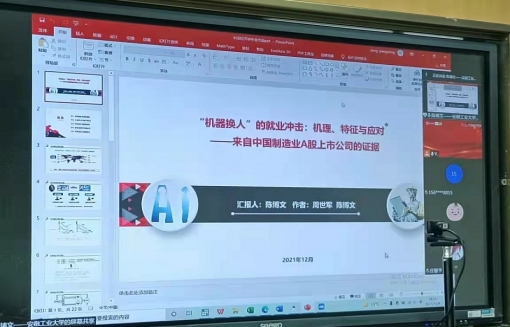 大会从400余篇中英文投稿论文中遴选出117篇高质量论文进入分论坛。公司数量经济学硕士生陈博文与导师周世军的合作论文《“机器换人”的就业冲击:机理、特征与应对——来自中国A股上市公司的证据》入选年会论文。陈博文在分论坛上进行了汇报,得到了专家们的一致肯定,并就汇报论文的有关问题与参会专家进行了深入交流。