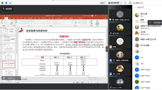 大会从503篇投稿论文中遴选出153篇高质量论文,进入数量经济理论与方法、经济增长、宏观经济运行等12个平行论坛。由公司数量经济学硕士生陈博文和其导师周世军合作的论文《“机器换人”的就业冲击:机理、特征与应对》入选年会论文。陈博文在“数字经济、实验经济学及其他学科”分论坛上进行了汇报,得到了专家学者们的充分肯定。