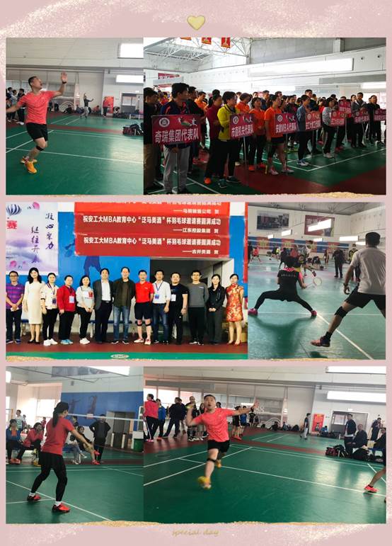 10月20日,为庆祝新中国成立70周年,传承文化底蕴,弘扬优良传统,展示办学成就,扩大社会影响,MBA教育中心以羽毛球邀请赛为载体,凝聚员工力量,丰富师生业余生活,促进MBA学员和学员单位之间广泛交流,由MBA教育中心主办,MBA员工会&MBA联合会共同承办“凝心聚力 继往开来”“泛马美酒”杯羽毛球邀请赛。