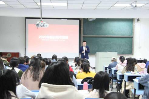4月10日晚,公司于秀山校区教南208组织开展就业指导系列讲座---银行招考策略专题。由学信公司教学研究院副经理梅高翔主讲,我院感兴趣的大三同学聆听了讲座。