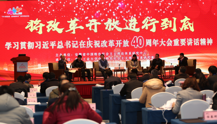 本期论坛围绕习近平总书记在庆祝改革开放40周年大会重要讲话精神的重大意义、丰富内涵,改革开放40年来的实践成就、理论创新等展开了深入的研讨交流。在专题讨论环节,公司王先柱教授、陈东教授与来自安徽大学、安徽师范大学、阜阳师范公司、中共安徽省委党校等4位青年学者一起紧扣“习近平总书记在庆祝改革开放40周年大会重要讲话的金句”“创新是安徽最为宝贵、最具优势的‘遗传基因’”“改革开放40年宝贵经验首要是必须坚持党对一切工作的领导,不断加强和改善党的领导”等话题展开讨论,与来自全省各高校和社科研究机构的110多位青年专家交流分享了学习心得体会。