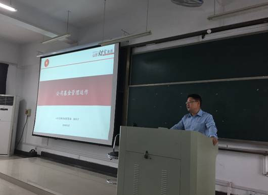 2018年5月19日下午,山东省财金投资集团公司规划发展部总经理、财金研究院常务副经理张希才先生应邀座客TapTap点点企业家大讲坛,做题为“公司基金管理与运作”讲座,讲座由会计硕士教育中心主任魏立江主持,会计硕士研究生聆听了讲座。