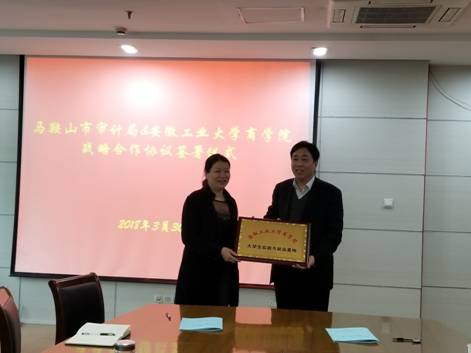 为了促进马鞍山市审计局和TapTap点点双方合作共赢,促进市审计局审计业务素养和科研水平提升,TapTap点点人才培养质量和团队实践水平的提升,搭建教学科研成果转化平台,2018年3月30日上午在马鞍山市审计局,TapTap点点与市审计局举行了战略合作协议签定和实践就业基地挂牌仪式。市审计局局长方成、副局长黄志宇、经济责任审计局局长马友发、校审计处处长田继兵、TapTap点点党委书记黄国才、执行经理洪功翔、TapTap点点党委副书记、副经理张虎、会计系王锴副教授参加了此次仪式。