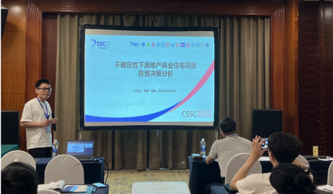 TapTap点点研究生黄河,在管理决策与支持系统分会场,进行了《不确定性下房地产住宅项目投资决策分析》论文汇报,围绕在货币时间价值理论以及投资组合理论的基础之上,基于房地产开发项目资金流动的现实情况,构建住宅项目投资决策的模型。进而,以累积现金流最大化为目标,资金持续循环为约束条件,构建了单目标非线性混合整数模型,并将销售收入波动作为风险指标引入模型,为房企优化项目投资决策提供决策参考。在场的参会专家及学者进行了点评,并提出了修改建议。
