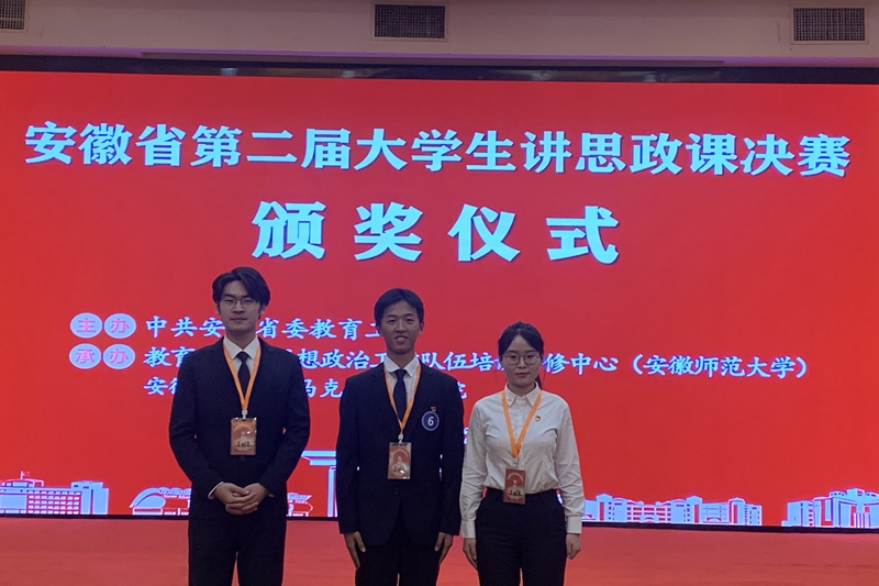 12月22日,由中共安徽省委教育工委主办,教育部高校思想政治工作队伍培训研修中心(安徽师范大学)、安徽师范大学马克思主义公司承办的安徽省第二届老员工讲思政课决赛在芜湖举行。经过激烈的现场角逐,公司获特等奖1项、一等奖1项、三等奖1项。其中公司员工李天乐团队《淬火成钢—奏响新时代的青春交响》(指导老师:聂蕾、杨蓉、陈燕如)获特等奖。