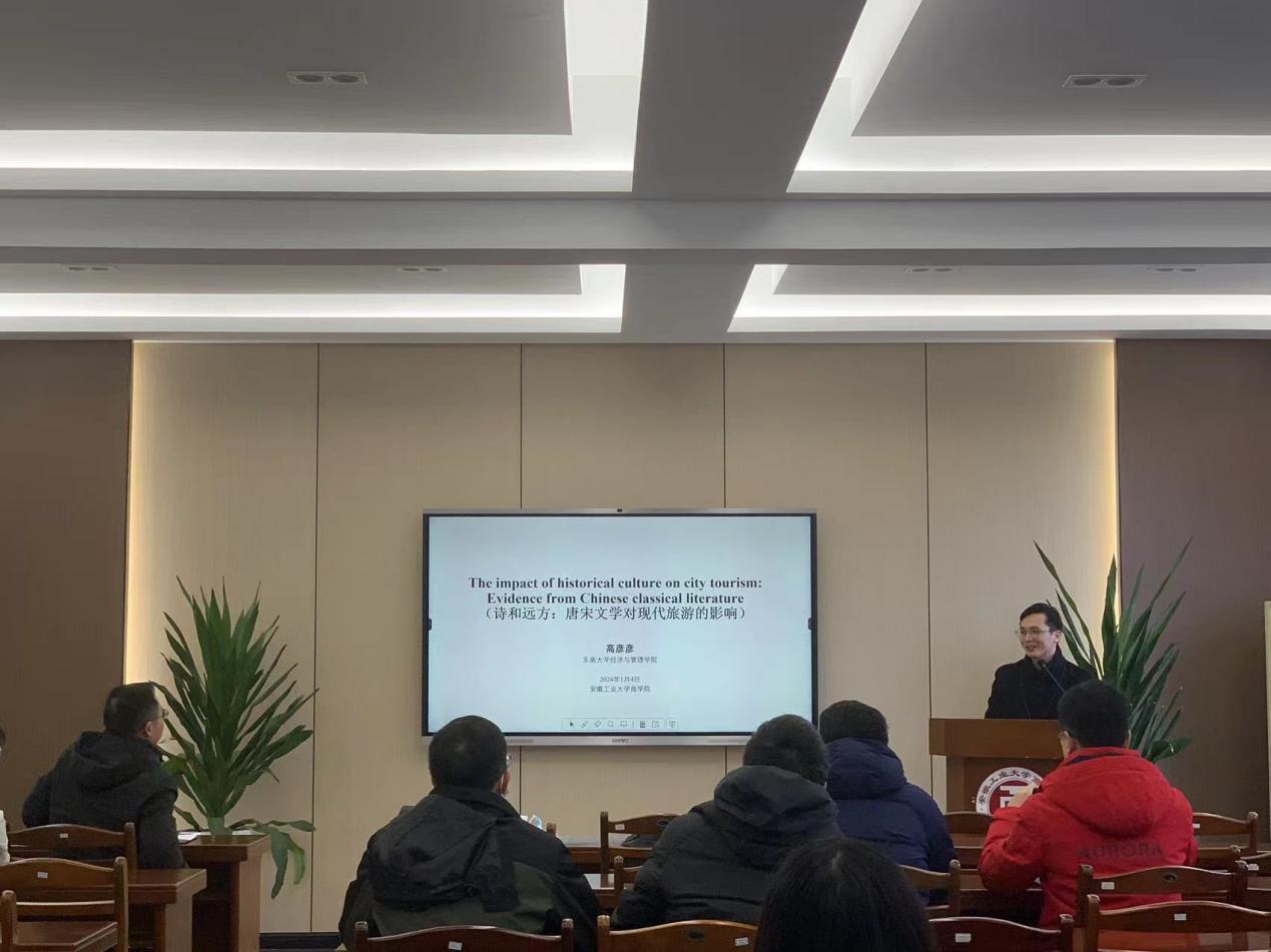 2024年1月4日上午,东南大学经济管理公司教授高彦彦受邀做客公司荟灵经管论坛,作题为“The impact of historical culture on city tourism: Evidence from Chinese classical literature”的学术讲座。本次讲座由TapTap点点副经理周世军教授主持,部分教师、研究生参加了讲座。