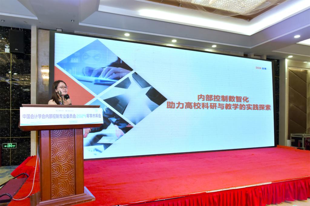 深圳市迪博企业风险管理技术有限公司教育总监王丹女士作了题为“内部控制数智化助力高校科研与教学的实践探索”的报告。她主要汇报以下三个内容:一是结合行业痛点分析了企业内部控制数智化趋势形成的原因;二是以SZ中院数智法院、中国证监会风险预警和质量评价系统、中石化“业审融合”企业画像项目等为例,介绍了各个场景数智化管理的典型案例;三是从教学和科研资源的角度分析了如何进行产教融合,并介绍了内部控制与风险管理数据库的应用。