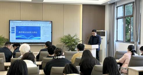 首先,杜飞书记致欢迎辞,强调在数字经济深度重构产业格局的背景下,企业家大讲坛既是员工直面产业前沿、打破课堂理论与商业实践认知壁垒的重要窗口,也是推动商科教育对接行业需求、孵化教学创新的关键纽带。