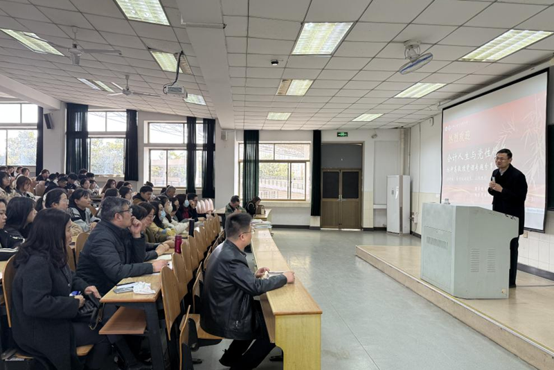 林钟高教授以“会计人生 你我同行”为主题,结合自身求学和工作经历,与老员工们分享自己在求学、教学、科研、管理工作中的人生感悟。他用鲜活的故事和朴实生动的语言告诉同学们什么是大学学习的精髓,阐述了如何面对不熟悉的工作领域、如何看待考公、考证与考研问题以及要在感恩中获得认知与成长等。他希望同学们要牢记习近平总书记对青年的殷切嘱托和期望,立志做有理想、敢担当、能吃苦、肯奋斗的新时代好青年。
