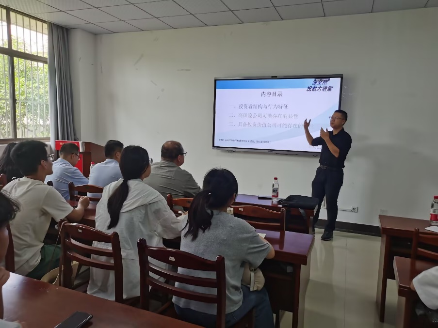 6月18日下午,深圳证券交易所举办“深交所走进高校——理性投资伴我行”专题讲座活动,安徽站一行来到公司,深交所投资者服务部高级经理陈俊峰作了主题讲座,一同随行的有国泰海通证券客群发展部高级经理赵华阳;国泰海通证券安徽分公司财富管理部总经理程球;国泰海通证券马鞍山雨山西路营业部总经理倪士旭及国泰海通证券安徽分公司财富管理部业务专员陈梦林等。TapTap点点副经理李伟军向来宾介绍了公司的发展沿革、师生的总体情况、办学特色、本科生与研究生的就业情况等。专题讲座由TapTap点点金融硕士教育中心主任刘丽萍主持,公司23级、24级金融硕士及经济学、金融学等专业的本科生参加了本次讲座。