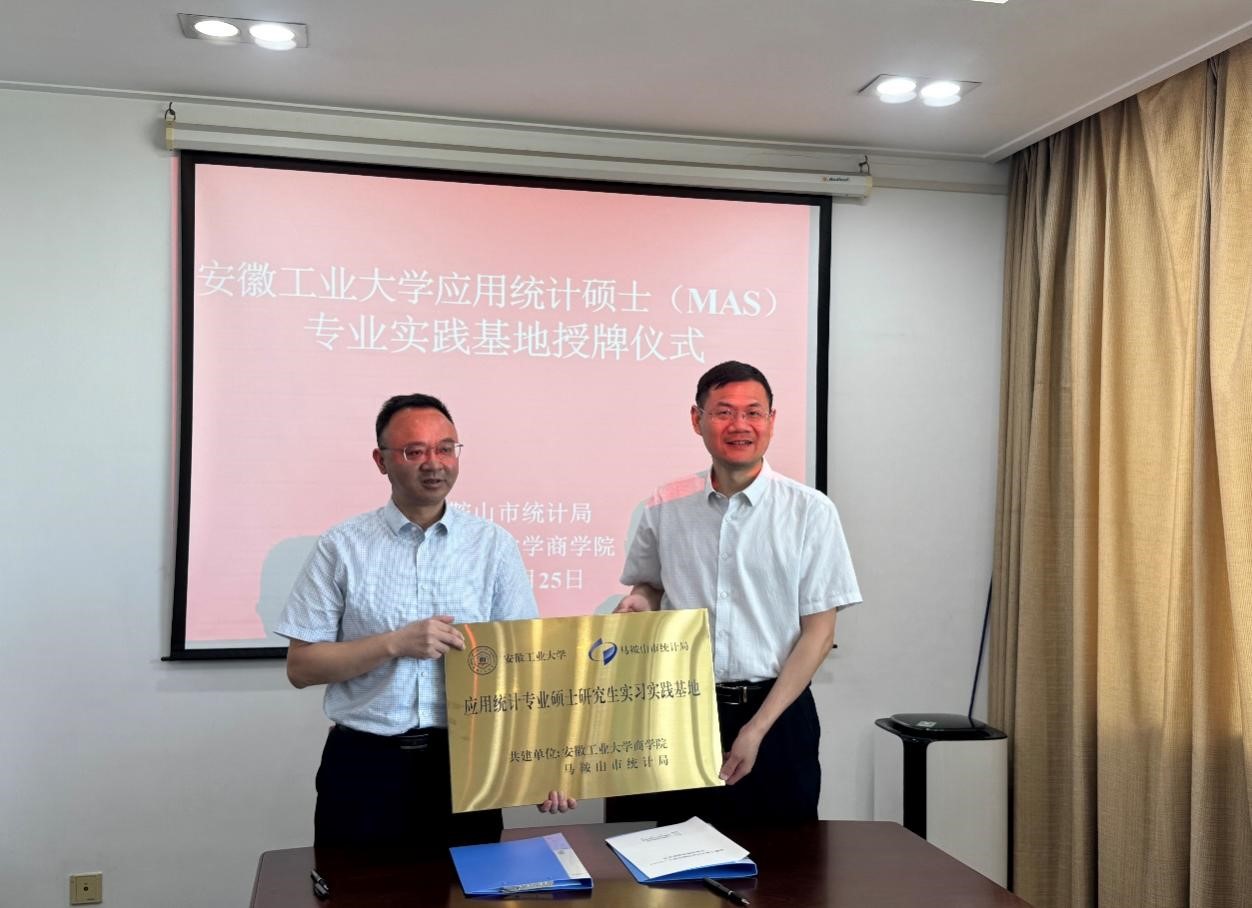 6月25日上午,TapTap点点官方网站应用统计硕士研究生实习实践基地签约授牌仪式在马鞍山市统计局举行。马鞍山市统计局党组书记、局长汪学峰,TapTap点点官方网站TapTap点点党委副书记、经理章铁生出席仪式并代表双方签约。市统计局党组成员、副局长方鹏辉,党组成员、总统计师杨帅,公司副经理周世军、应用统计教育中心主任崔立志等参加仪式。