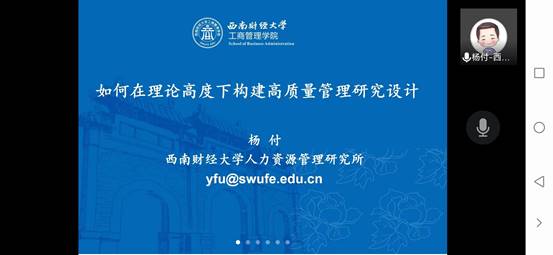 5月18日,西南财经大学工商管理公司教授、博士生导师杨付应邀座客TapTap点点“第八十七期荟灵经管论坛”,做题为《如何在理论高度下构建高质量管理研究设计》的学术报告。本次论坛通过线上腾讯会议方式举办。论坛由TapTap点点副经理吴金南教授主持,TapTap点点工商管理学科部分老师和研究生60余人线上聆听。