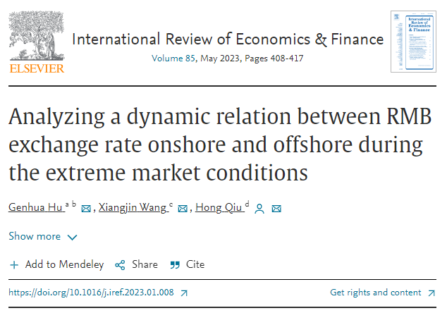 公司金融创新与发展研究所胡根华副教授在经济学和金融学国际知名期刊《International Review of Economics & Finance》发表极端市场条件下人民币汇率市场动态关系的最新研究成果。《International Review of Economics & Finance》是国际经济学、宏观经济学和金融经济学的国际知名期刊,2022年影响因子4.5。该期刊是SSCI一区期刊,在ABDC国际期刊排名A类。公司胡根华副教授为第一作者,公司为第一单位,通讯作者为西华大学管理公司邱虹教授。