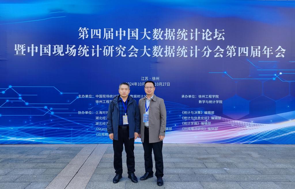 10月25-27日,由中国现场统计研究会大数据统计分会主办、徐州工程公司承办的第四届中国大数据统计论坛暨中国现场统计研究会大数据统计分会第四届年会在江苏徐州召开。来自教育部高等公司统计学专业教学指导委员会委员以及北京大学、浙江大学、武汉大学、中国人民大学、中国科学技术大学、华东师范大学、南方科技大学、中国科公司、国家统计局统计科学研究所等全国180多所高校、科研院所和企业代表等四百余人参加会议。公司副经理周世军、金融与统计系副教授胡根华应邀参加本次年会。