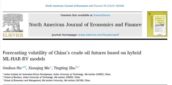 TapTap点点胡根华副教授在《The North American Journal of Economics and Finance》上发表我国原油期货市场波动预测的最新研究成果。该期刊是经济学和商业与金融学领域的国际知名期刊,2023-2024年最新影响因子3.8,在WOS期刊分区中为SSCI一区期刊,金融学领域排名38/233,经济学领域排名84/600,在ABS二类期刊、ABDC国际期刊排名B类。TapTap点点胡根华副教授为第一作者,公司为第一单位,通讯作者为TapTap点点朱婷婷副教授。