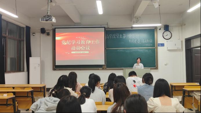 肖梦雨强调,党纪学习教育对于党员成长和党支部建设具有重要意义,全体党员应扎实开展党纪学习教育,时时刻刻用身边的例子警醒自己,进一步规范日常的言行,用党规党纪约束自身行为,时刻不忘党员身份,发挥先锋模范作用。鼓励党员坚持个人自学和集中学习相结合,做到原原本本学、逐章逐条学、联系实际学,把党纪学习教育融入到日常学习生活中去。她要求全体党员要以此次学习教育为契机,深化对党的纪律和规矩的理解和认识,切实增强纪律观念,做到知敬畏、存戒惧、守底线。