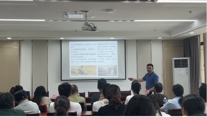 为进一步弘扬中华优秀传统文化,增强社区居民的文化自信,促进社区文化繁荣与发展,近日,公司会计硕士党支部书记、中共雨山区佳山乡党委“学习有理”理论宣讲项目宣讲员陈昌龙受邀为佳山社区开展了一场主题为“坚定文化自信—推动中华优秀传统文化创新发展”的宣讲活动。此次活动吸引了众多社区居民、员工及文化爱好者积极参与,现场气氛热烈而庄重。