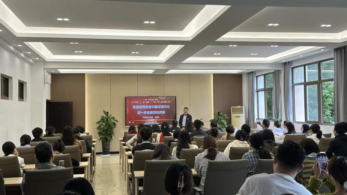 毕圣海以“紧紧围绕推进中国式现代化进一步全面深化改革”为主题,从“怎么看、怎么干、怎么抓”三个方面深刻阐释了《决定》主要内容,突出了六个坚持、七个聚焦。他讲述了从党的十一届三中全会到党的二十届三中全会的改革历程,重点介绍了党的二十届二中全会以来党和国家事业取得的重大成就,强调要深刻理解进一步全面深化改革的重要性、必要性和进一步全面深化改革的重大原则。