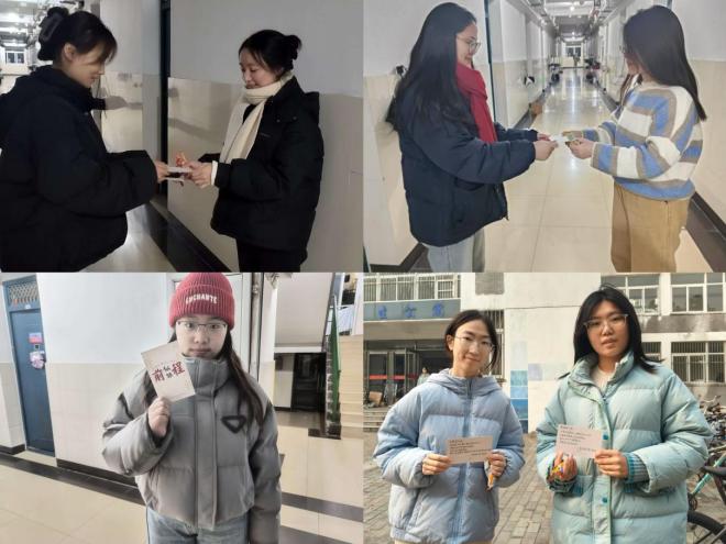 现场送福,温情涌动。活动当天,支部党员亲手将贺卡递到学长学姐手中,她们纷纷表示,这份来自党组织的深切关怀与真挚祝福,为她们注入了强大的动力与信心,使他们能够以更加饱满的精神状态,迎接未来道路上的种种挑战与机遇。