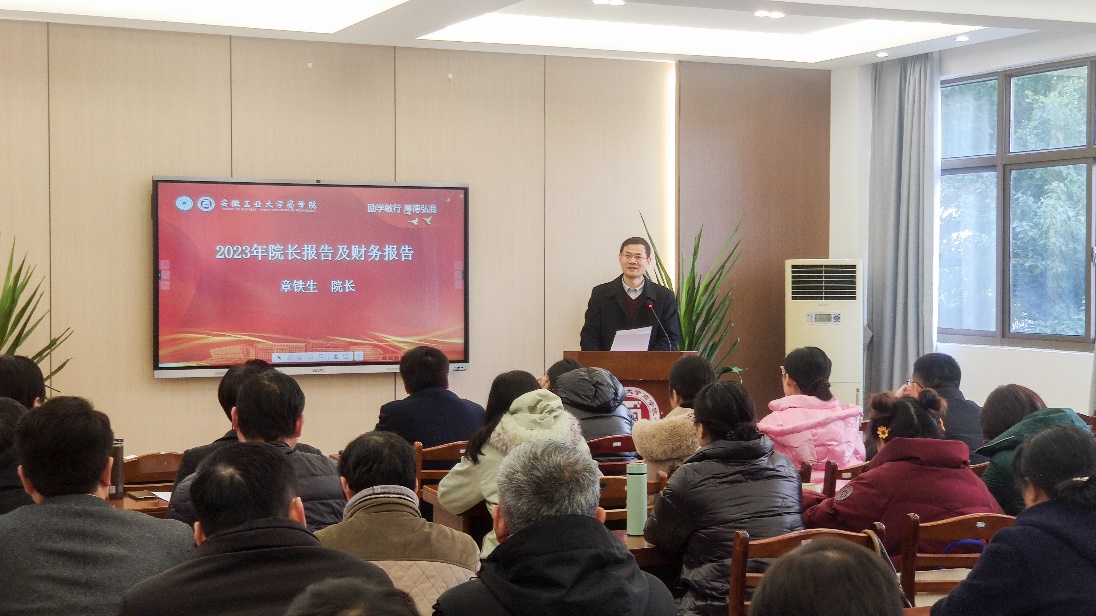 大会在雄壮的国歌声中拉开序幕。经理章铁生向大会作2023年度经理工作报告,报告中指出,2023年公司以习近平新时代中国特色社会主义思想为指导,全面贯彻落实党的二十大精神,紧紧围绕“十四五”事业发展规划和2023年党政工作要点,顺利完成2023年各项工作并取得优秀的成绩。章铁生并作2023年度公司财务报告,公司在“预算编制与执行”、“资金使用与管”、“经费保障与监督”等方面完成了预期工作,所有公共项目收支平衡,财务整体情况良好。