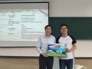最后本次活动负责人鲍强庆代表08届员工向公司捐赠了液晶显示屏,洪功翔代表TapTap点点向员工们回赠校徽校章等纪念品。