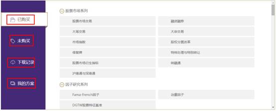 登录成功后,进入网站首页,首页主要包括CSMAR最新滚动资讯、宣传活动、已购买、未购买、下载记录、我的方案、特色精选几个模块,其中:
