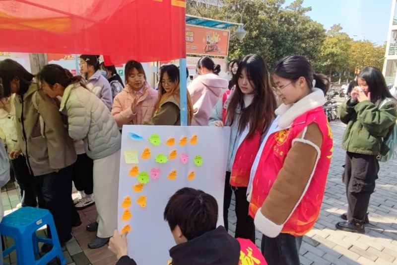 活动开始前,支部党员协助院青年志愿者协会搬来了活动所需的物资并统一穿上了志愿服。活动开始后,女生们先在便利贴上写下愿望,再由支部党员们协助收集整理并公示。在将便利贴公示以后,其他同学可以自愿选择一个愿望进行实现。同学们自由组队,现场气氛热烈浓厚。支部党员们一边引导一边维持秩序,让参加活动的同学们有序排队不要挤在过道上影响来往的人群和车辆,积极引导并为同学们解决问题,保证了本次活动的顺利进行。活动结束后,支部党员自觉清理活动现场留下的垃圾并送还桌椅、志愿服等物资。