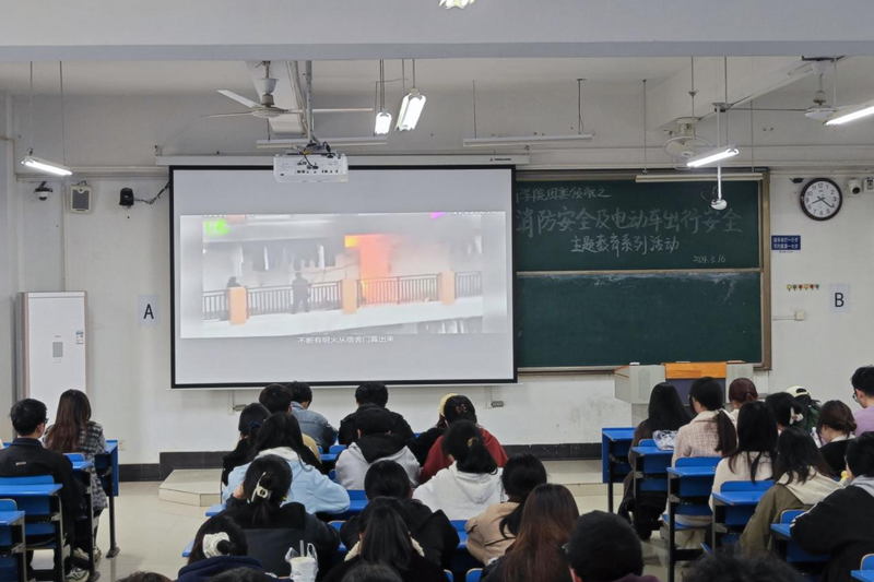 活动第一部分,由范嘉荣组织员工观看消防安全纪录片,片中一个个触目惊心的真实案例时刻警醒同学们校园电瓶车的不规范使用及宿舍火灾对校园安全的严重破坏性。为使同学们更好地应对相关突发状况,主讲人穿插讲解了火灾发生时正确的灭火和逃生方法,提升了同学们对消防安全的认识,进一步加强了火灾预防意识。