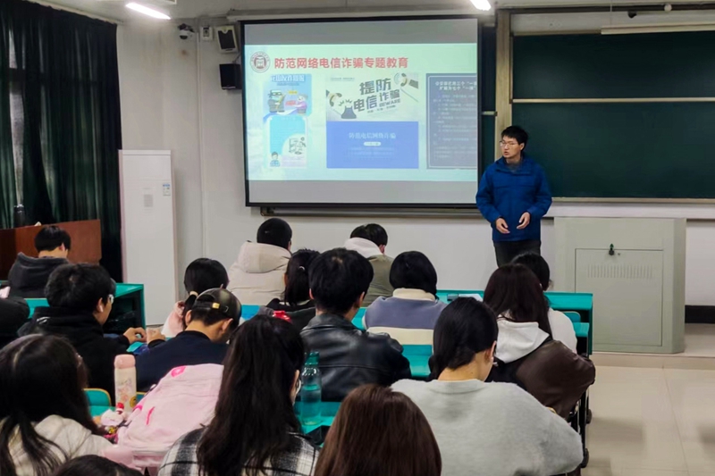 公司各年级、各班级以“防范于心,反诈于行”为主题,召开了主题班会、年级会,辅导员(班主任)从电信网络诈骗的常见手段、防范电信网络诈骗的建议措施等方面作了宣讲指导,同时结合最近发生在身边的实际骗局案例,提醒同学们要防范兼职刷单、杀猪盘、办理贷款、投资理财、冒充购物客服退款、买卖游戏装备等诈骗手段,告知同学们甄别办法,进一步增强“辨识力”。