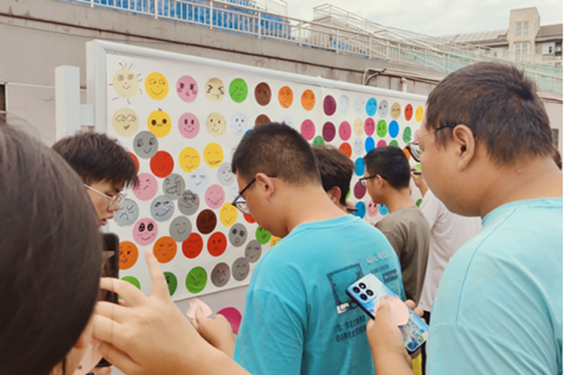 在这次游园会中,“情绪多彩,留下笑脸”这一环节颇受关注。展板前,员工用画笔在预留的位置上描绘着自己的情绪。每一幅画作都是一个独特的心灵故事,它们汇聚在一起构成丰富多彩的情绪画卷。员工通过这种方式将自己的情绪外化,将内心的感受传递给他人。这个环节不仅增进了员工间的情感交流,也为大家提供了一个反思自我、理解他人的机会。