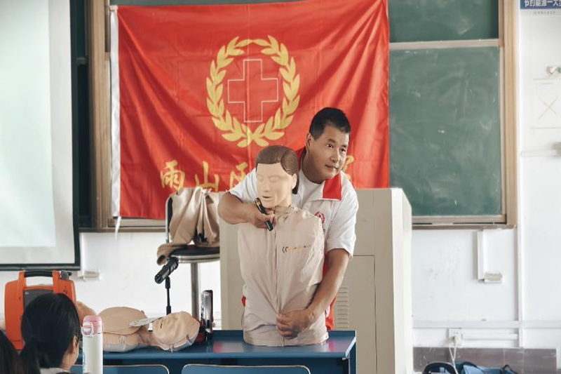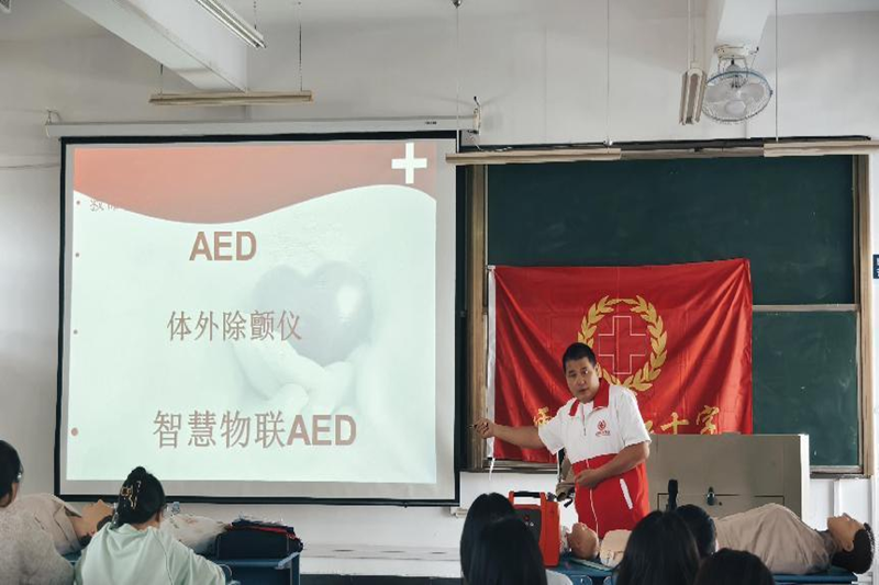 在如何正确进行心肺复苏术和AED使用方面,甘国庆重点强调了心肺复苏术的基本步骤和操作要点,包括胸外按压、人工呼吸、AED电击等关键环节。他通过模拟人体模型进行了现场演示,并指导参会同学进行实际操作,确保同学们能够熟练正确地掌握。