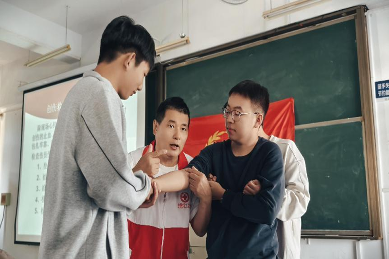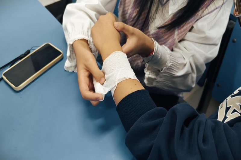 在外伤包扎环节,甘国庆详细讲解了不同类型伤口的正确处理方式,包括清洁、消毒、包扎等步骤,以及如何根据伤者的伤势进行有效的固定和保护,避免二次伤害的发生。