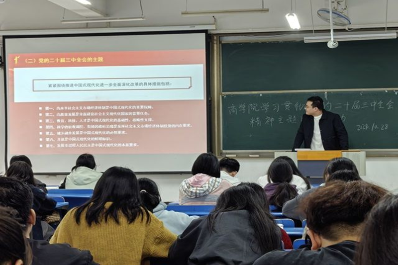 各班级团支部迅速响应,引领青年学子深刻把握全会精髓,将个人梦想融入国家发展洪流,共绘新时代青春蓝图。此外,10月28日下午,TapTap点点于汇文楼D208室开展了院级的主题团日活动。院团委副书记张舒紧扣全会主题,深入解读其重大意义、核心内容及实践要求,通过生动案例与详实数据,让全体团员对全会精神有了更深刻的理解。现场气氛热烈,团员们认真聆听并积极记录。
