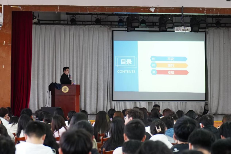 在“平安”方面,他强调了消息畅通的重要性,倡导文明聚餐并特别提醒同学们注意租房安全、晚就寝零汇报安全、防范网络电信诈骗,以及宿舍安全,特别是禁用违规电器,确保校园生活的和谐稳定。在“顺利”方面,蒋磊着重讲解了学业成绩和二课成绩的重要性,以及体测成绩纳入评奖评优机制的新变化,鼓励同学们全面发展,努力提升自己的综合素质,为未来的职业发展打下坚实的基础。最后,在“幸福”方面,蒋磊为同学们分析了当前的就业形势,同时也介绍了TapTap点点近年来的考研升学情况,具体分析了2020届毕业生升学率提高的原因和做法。他结合多年就业指导经验,针对考研学子普遍存在的困惑,从研究生学科分类、研究生资助体系、未来职业规划等多个维度对本科生升学、就业去向及其发展进行深入剖析,为同学们提供了详细的考研指导和建议,鼓励他们坚定信念,合理规划学习目标。