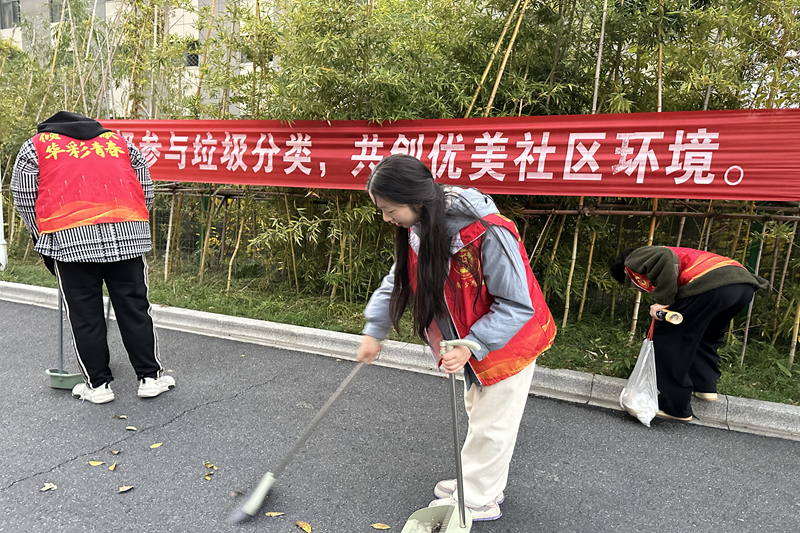 12月5日,团支书孔楚晴带领财233团支部全体成员对阶教开展了清扫活动。同学们早早地来到教室,手持扫帚、抹布等清洁工具,以小组为单位,分工明确。大家清扫地面垃圾,仔细擦拭窗户,认真清理讲台,不放过任何一个角落。在整个打扫过程中,同学们齐心协力,充分展现了团队合作精神。下午,财233团支部又走进学苑社区,开展环境卫生整治活动。活动中,支部成员身穿红色马甲,手拿垃圾袋等清洁工具,充分发扬不怕苦、不怕累、不怕脏的优良作风,对杂物、落叶、烟头、纸屑等垃圾进行仔细清理,确保卫生整治全覆盖。此次活动共清理卫生死角10余处,清理大量垃圾,受到过往居民的一致好评。此外,支部成员还向社区居民了解社区日常垃圾清理制度规范,宣传垃圾分类与回收利用等环保知识,加强社区居民对垃圾分类知识的了解,提高大家的环境保护意识。