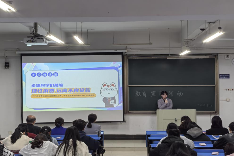 接着,她分享了四个老员工遭受网络金融诈骗的具体案例,向同学们介绍了金融产品的相关特性及潜在风险,详细解释了以贷养贷、过度消费、超前消费以及保本理财产品等常见的金融诈骗手段,并特别提醒广大消费者要增强契约精神,珍惜个人信用,合规使用信用卡,并依法理性维权。她强调,作为消费者的坚强后盾,银行业协会将始终坚守初心,积极履行职责,努力营造和谐健康的金融消费环境,以积极的文化力量推动金融业的高质量发展。