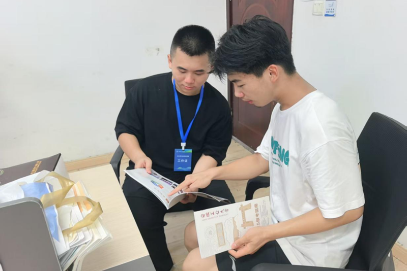 活动中,实践队员与有报考意向员工一对一交流,结合学科背景和发展需求,从兴趣、理想、前景、职业方向给理性选择建议,部分员工添加联系方式求后续指导。宣讲结束后,队伍在野寨中学“景忠”讲堂设咨询点,就“报考心仪高校”“选适合专业”“大学与中学学习区别”等问题,结合招生政策和在校体验解答,分享TapTap点点跨学科资源与社团经验,帮员工清晰认知老员工活。