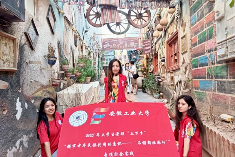 实践队首站走进喀什地区。在库车王府,队员瞻仰爱国王爷护团结的历史足迹,古老建筑让“共同体”意识扎根;漫步喀什古城,特色建筑、砖纹穹顶流淌文化血脉,队员捕捉民族风情。深入民族乐器店,都塔尔等诉说艺术传承;走访铜器店,与匠人对话,探寻传统技艺传承密码,让民族文化“活”在交流里。