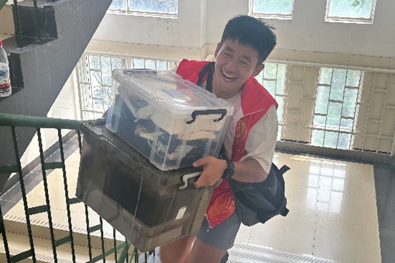 志愿者们身着统一服装,成为迎新现场最亮眼的风景线:从校门口的“一对一”引导,到报到点的材料审核、信息录入;从主动支援其他公司的行李搬运,到耐心解答新生及家长关于“培养方案”“宿舍安排”“校园生活”的疑问……他们用细致的服务、饱满的热情,传递着商院的“温度”。正如志愿者说:“我们是新生的‘第一盏灯’,要让他们刚进校门就感受到家的温暖。”志愿者扛着行李穿梭在校园,汗水早已浸透了马甲。尽管累得衣衫紧贴后背,他们的笑容始终明亮,因为这汗里藏着帮人的甜,这笑是青春里最动人的温暖。